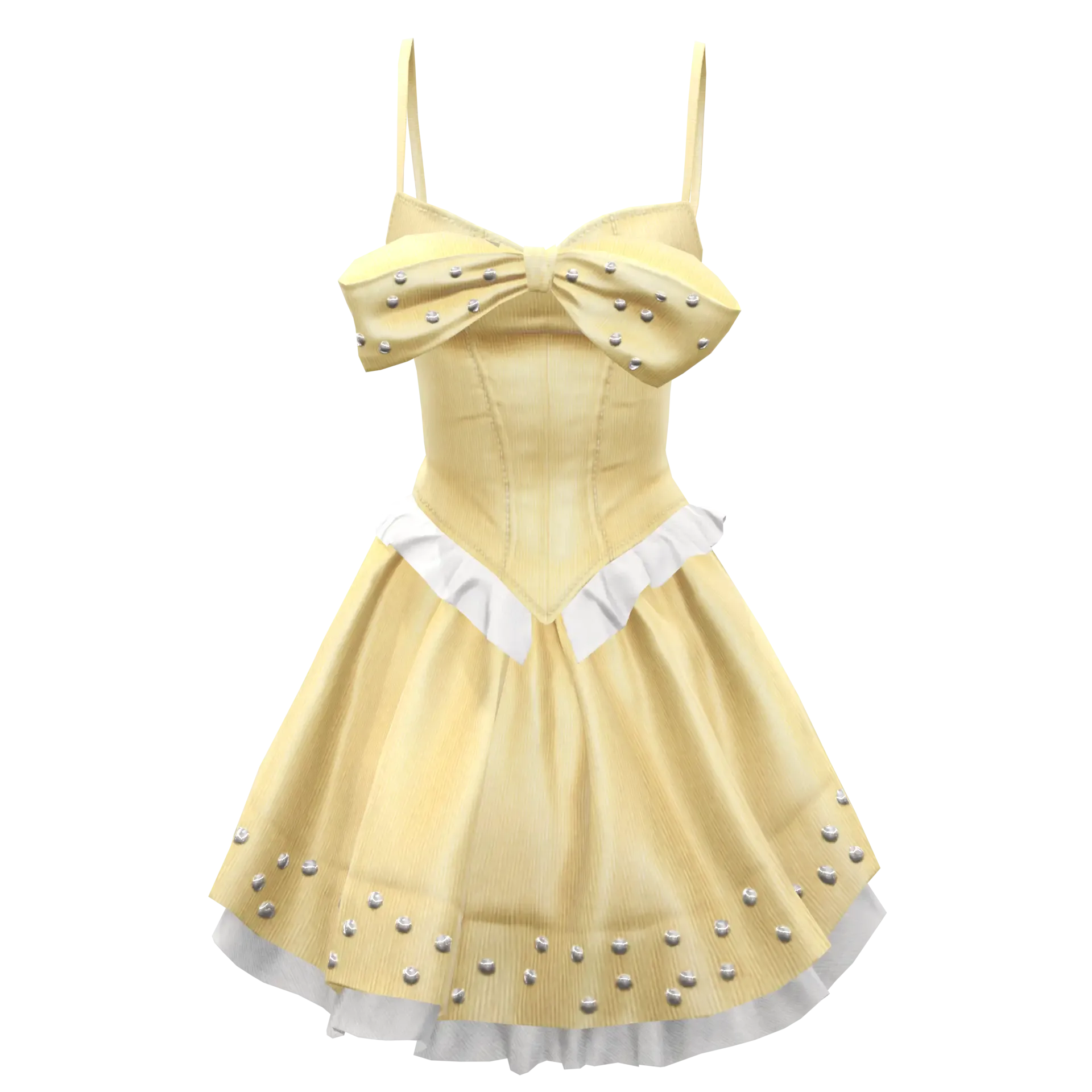 A delicate flowy silk dress with a bow detail, capturing the soft and feminine charm of the coquette aesthetic.